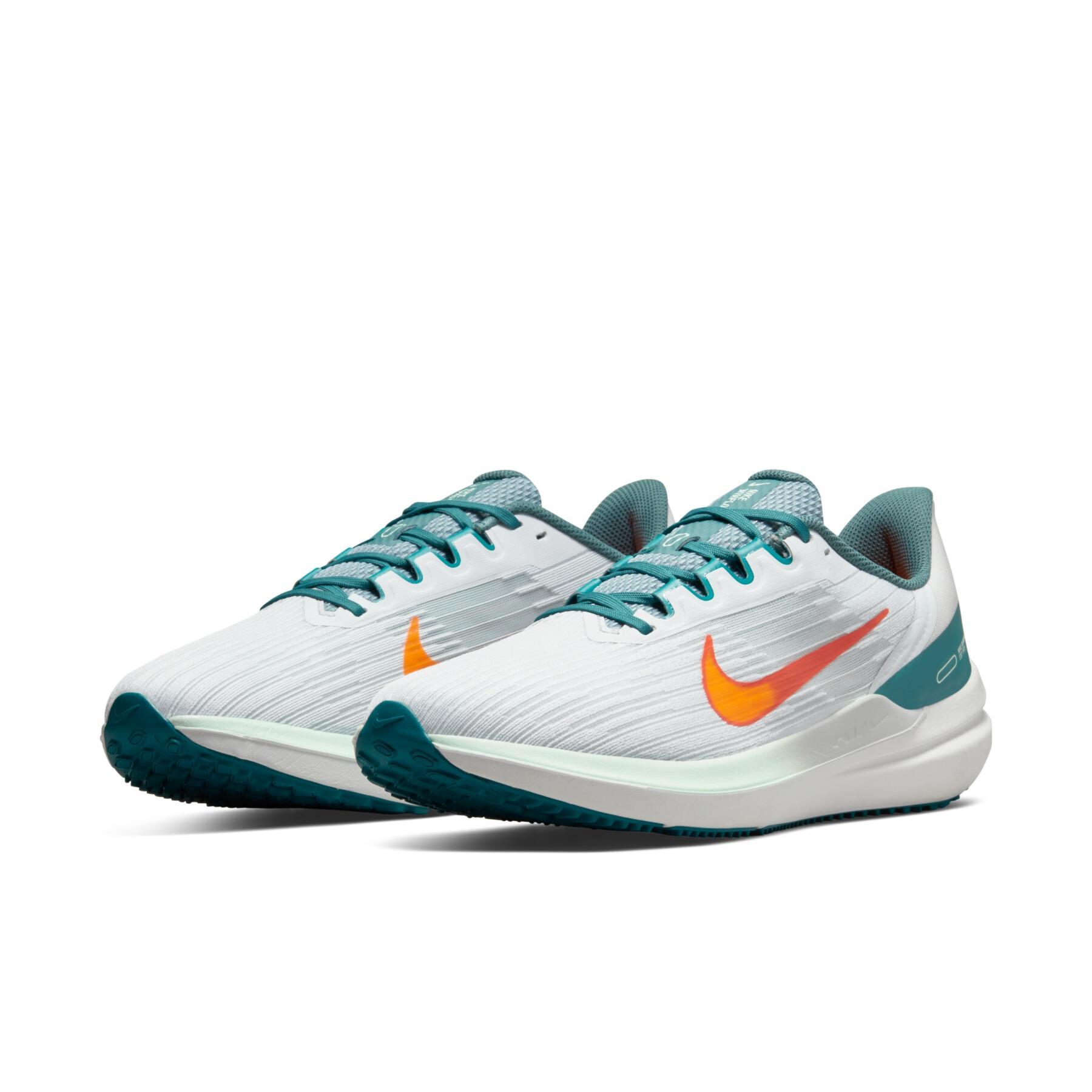 Colorway: White / Teal / Red-Orange gradient swoosh